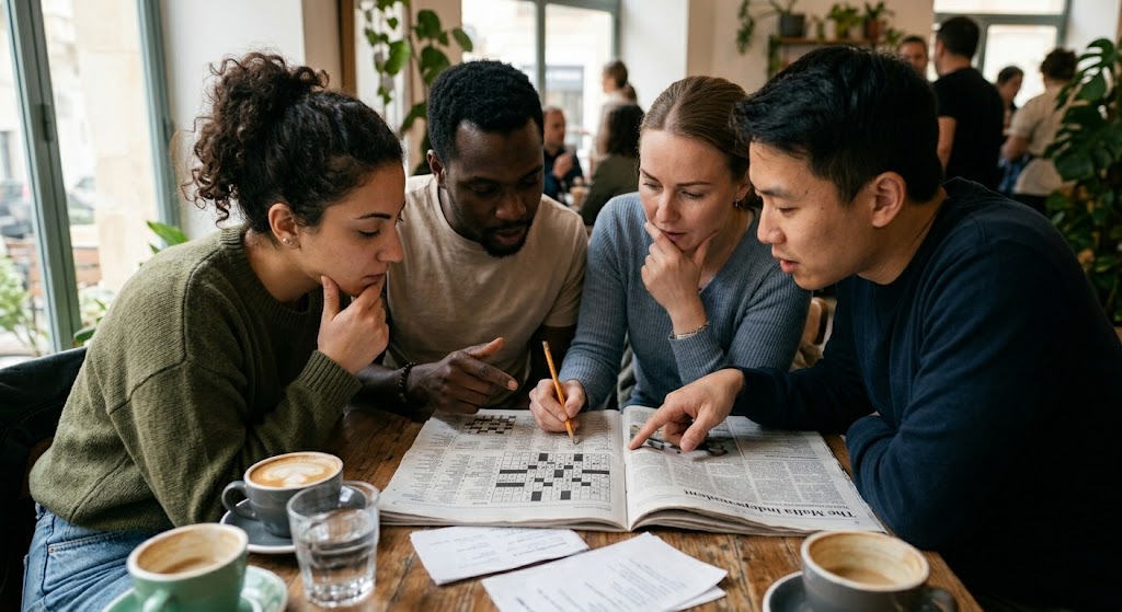 Vaikka ristikon täyttäminen on usein hiljaista ja yksityistä puuhaa, ristikko ratkojat muodostavat tiiviin ja auttavaisen yhteisön. Internetin keskustelupalstat ja sosiaalisen median ryhmät ovat täynnä vihjeiden vaihtoa ja yhteistä pohdintaa. "Mikä on viisikirjaiminen sana vihjeelle 'metsän reunassa'?" on tyypillinen kysymys, johon saa vastauksen usein minuuteissa. Tämä yhteisöllisyys tekee harrastuksesta sosiaalisen ja mahdollistaa oppimisen kokeneemmilta mestareilta. Monet perheet ratkovat myös viikonlopun ristikon yhdessä aamiaispöydässä, mikä on hieno perinteinen tapa siirtää kielellistä osaamista sukupolvelta toiselle.